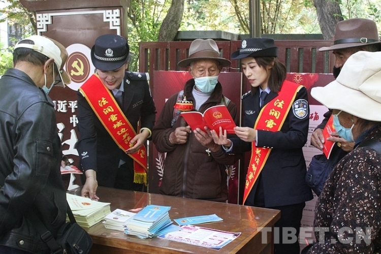 圖為西藏邊檢總站執(zhí)法調(diào)查支隊(duì)組織民警開展“2023民法典進(jìn)公園”主題宣傳活動 攝影:仁青旺堆