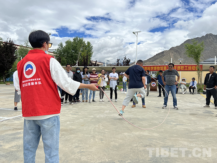 “我們是從去年開始舉辦干部職工運動會,今年在7月份舉辦的目的和意義在于一方面是喜迎黨的102歲生日,另一方面結(jié)合學習貫徹習近平新時代中國特色社會主義思想主題教育促進發(fā)展、團結(jié)、能力提升,通過形式多樣的活動來提高西藏自然科學博物館的精神面貌?!蔽鞑刈匀豢茖W博物館館長次仁羅布介紹。