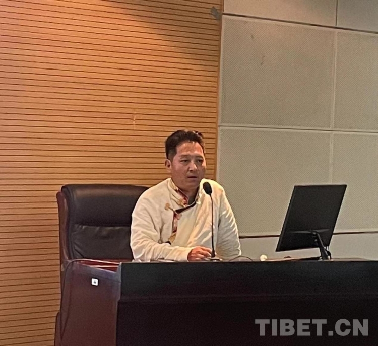 圖為中國藏學研究中心青年藏學會會長拉先加發(fā)言。攝影:王智霖