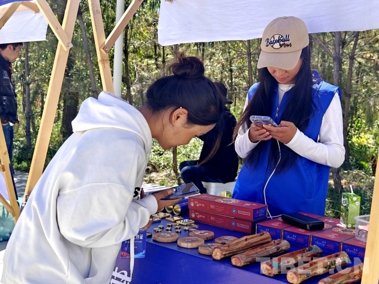 圖為活動現(xiàn)場當(dāng)?shù)靥厣a(chǎn)品展 攝影:次旦拉姆