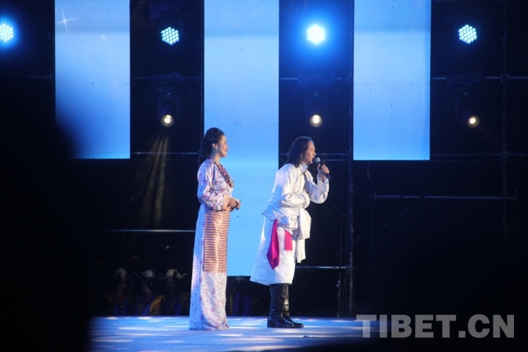 圖為歌手次旦晉美、白瑪拉姆演唱《千年的愛(ài)》 攝影:旦曲