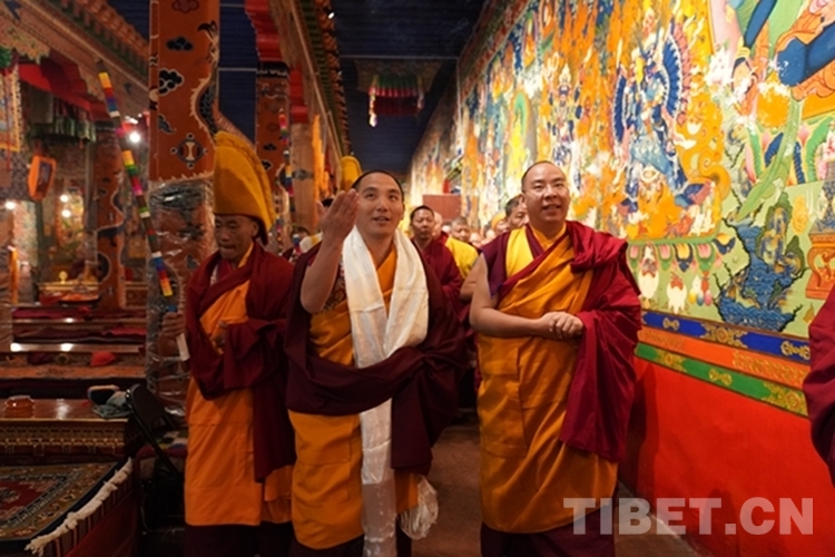 在瓊布·阿旺強(qiáng)巴堅(jiān)贊活佛引領(lǐng)下,班禪依次朝拜主殿懺悔殿、主供佛殿、度母殿、護(hù)法神殿、舊杜康殿,參觀文物陳列室,前往寺廟辯經(jīng)場觀摩僧人辯經(jīng),并就扎西吉培寺“三個(gè)意識”教育開展情況和僧人綜合考評機(jī)制有關(guān)情況進(jìn)行調(diào)研。