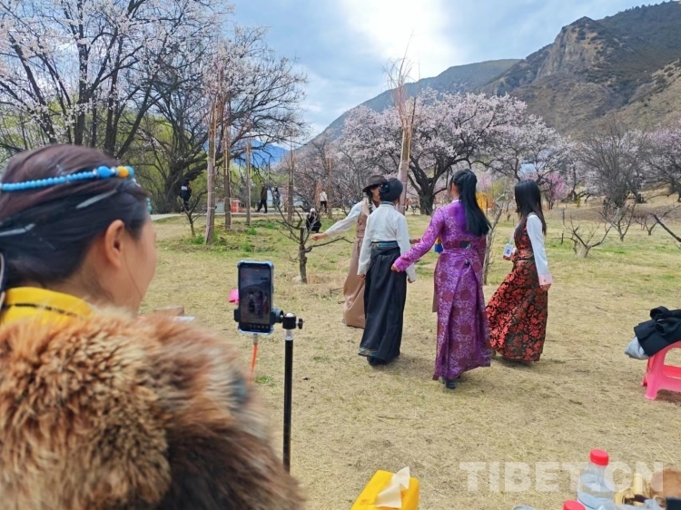 在嘎拉村桃花源內(nèi)、民族文化體驗(yàn)區(qū)、產(chǎn)品展銷點(diǎn)……都能看到林芝市職業(yè)技術(shù)學(xué)校學(xué)生們的身影。學(xué)生們走進(jìn)桃花林,以藍(lán)天白云、皚皚雪山為背景,通過直播帶全國各地的網(wǎng)友們云游林芝“桃花第一村”,展示著桃花灼灼盛開的美景。他們生動(dòng)的解說和精彩的直播吸引了大量觀眾“云游林芝 云賞桃花”,體驗(yàn)不一樣的桃源春色。
