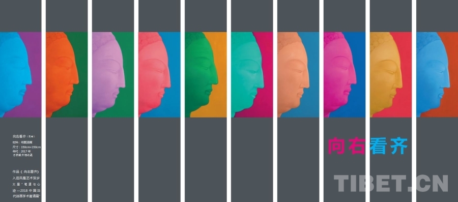 在創(chuàng)作過程中,陶宏嘗試將傳統(tǒng)佛像藝術(shù)與現(xiàn)代油畫技法相結(jié)合,融入現(xiàn)代審美元素和時代精神?!拔蚁M梦鞣降挠^念來表達東方精神,這就是互鑒與融合?!碧蘸甑挠彤嬜髌贰稘h字雕塑》《覺者》、《向右看齊》等受到沃霍爾、克洛斯的影響,中外文化在時空的交融與碰撞中,即刻產(chǎn)生出新的觀念。借助現(xiàn)代藝術(shù)手法和觀念,陶宏嘗試對佛像藝術(shù)進行解構(gòu)與重塑。通過打破傳統(tǒng)的創(chuàng)作界限,將佛像與周圍環(huán)境、人物以及情感進行融合,創(chuàng)造出一種新的藝術(shù)表達方式,更加自由、開放。