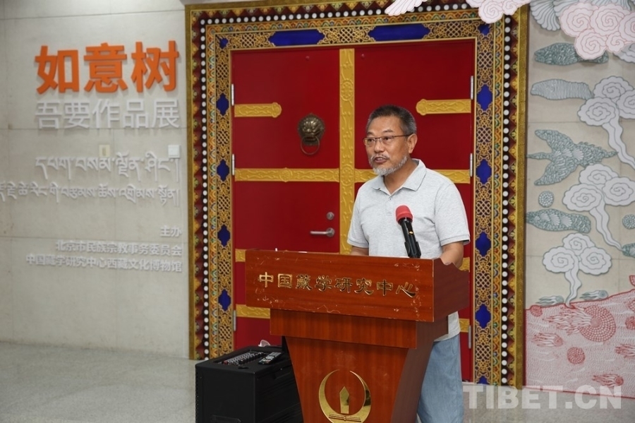 中國西藏網(wǎng)訊 7月5日,由北京市民族宗教事務(wù)委員會指導(dǎo)、中國藏學研究中心西藏文化博物館主辦的“如意樹——吾要作品展”在京開幕。中國藏學研究中心有關(guān)負責人和專家學者、北京市民族宗教事務(wù)委員會有關(guān)負責人、書籍設(shè)計師吾要及北京藝術(shù)界人士等60余人出席開幕式。