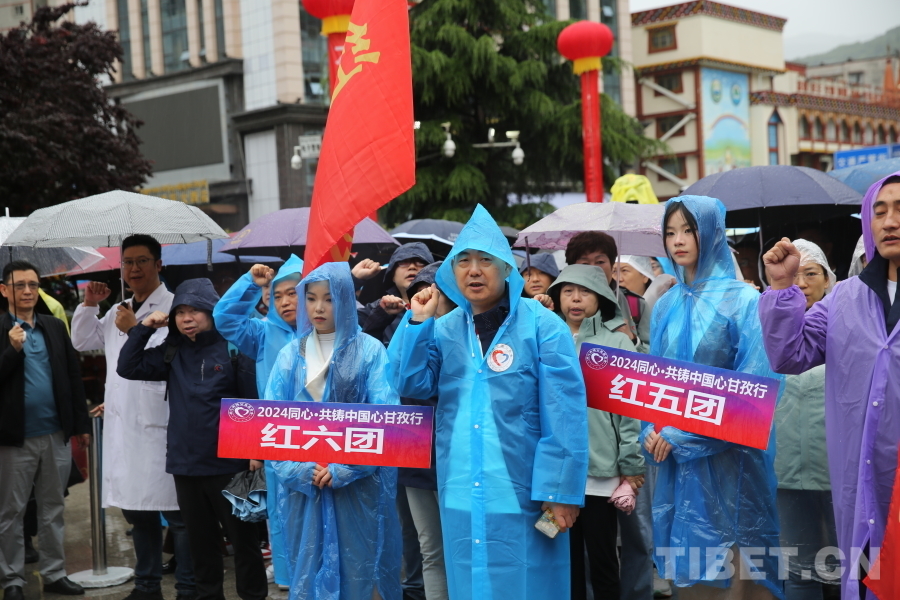 圖為志愿者們正在活動現(xiàn)場宣誓 攝影:登真巴珍