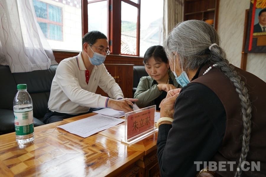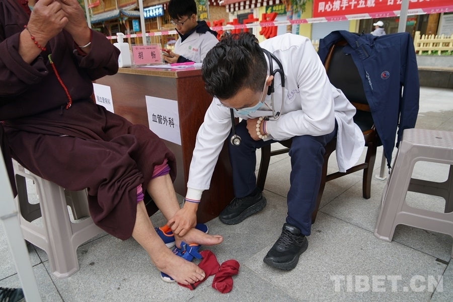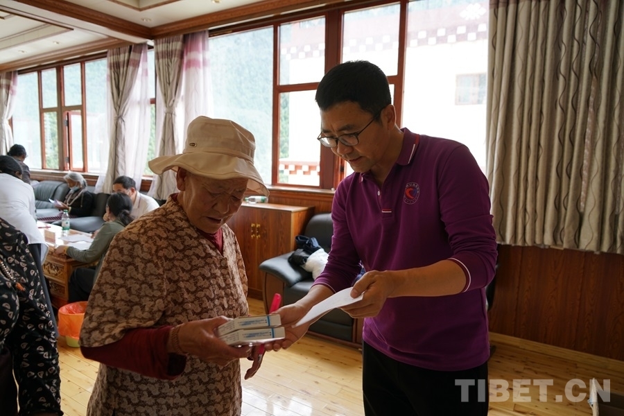 得知有來(lái)自北京的醫(yī)療專家為大家義診,家住白玉縣城的切呷一大早便帶著父母來(lái)到了義診現(xiàn)場(chǎng)。她的母親澤仁拉嘎今年75歲,自述下肢從腰間、腿部到腳尖都會(huì)發(fā)麻、有疼痛感,行走時(shí)腰部會(huì)很累,偶爾還會(huì)因?yàn)榭刂撇缓猛炔炕顒?dòng)而摔倒。北京水利醫(yī)院創(chuàng)傷骨科副主任醫(yī)師王耀輝在經(jīng)過詳細(xì)問診后,為拉嘎阿媽開具了營(yíng)養(yǎng)神經(jīng)的藥品,并建議她進(jìn)一步做胸椎和腰椎方面的檢查。