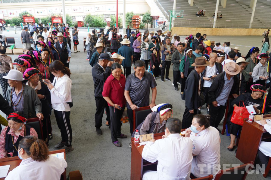 7月8日,義診專家分為3個小組,在縣城東女國廣場、丹東鎮(zhèn)和東谷鎮(zhèn)正式開展義診活動。上午9時,在縣城東女國廣場,得到消息的群眾早早來到現(xiàn)場排隊領(lǐng)號分流等待就診,現(xiàn)場共設(shè)立了10多個專業(yè)診療臺,涵蓋了心內(nèi)科、骨科、神經(jīng)內(nèi)科等,確保能夠滿足當(dāng)?shù)鼐用竦尼t(yī)療需求。