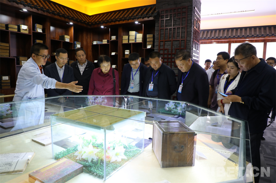中國西藏網(wǎng)訊 7月10日,傳承弘揚“兩路”精神暨交通變遷與青藏高原現(xiàn)代化研討會青海分會在西寧舉辦。會議期間,“青藏公路之父”慕生忠將軍的女兒慕曉峰、莫河駝場相關(guān)負(fù)責(zé)人以及來自青海省委黨校、青海省社科院、青海民族大學(xué)、山西大學(xué)等單位的與會人員來到青海民族大學(xué)古籍館,參觀了入選《國家珍貴古籍名錄》的館藏珍貴古籍展覽,并認(rèn)真聆聽古籍館相關(guān)負(fù)責(zé)人的詳細(xì)講解,近距離感受了中國古籍的版本之美、紙張之美、刻印之美。