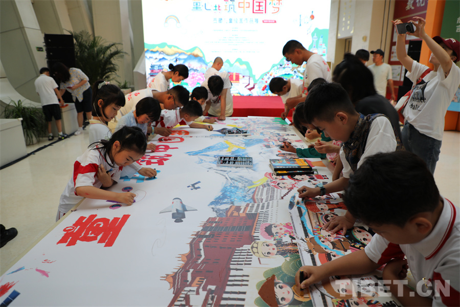 此次活動邀請西藏、深圳、上海、北京等地400余名兒童圍繞“家園”“祖國”“生態(tài)”“未來”等題目創(chuàng)作了592幅作品,遴選出213幅展出。這些充滿生命色彩和奇妙想象的作品,圍繞西藏自治區(qū)在新時代的蓬勃發(fā)展,以確保國家安全和長治久安、高質(zhì)量發(fā)展、保護生態(tài)環(huán)境以及強化邊疆建設(shè)為主旨,呈現(xiàn)了孩童心中璀璨絢爛的中國夢。