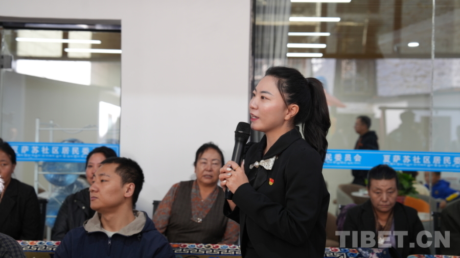 圖為夏薩蘇社區(qū)干部群眾共同學(xué)習(xí)黨的二十屆三中全會(huì)精神,分享交流學(xué)習(xí)體會(huì)。攝影:德吉卓瑪