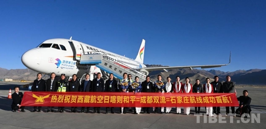 中國西藏網(wǎng)訊 10月28日9:50,隨著TV9976航班平穩(wěn)降落在日喀則和平機(jī)場(chǎng),日喀則和平—成都雙流—石家莊航線正式通航,這是日喀則和平機(jī)場(chǎng)開通至石家莊的首條定期客運(yùn)航線,由西藏航空?qǐng)?zhí)飛。