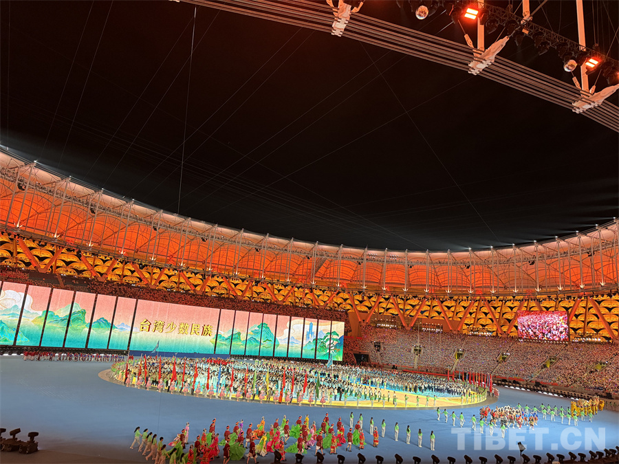 圖為臺灣少數(shù)民族代表團在開幕式上入場 攝影:蘇洋