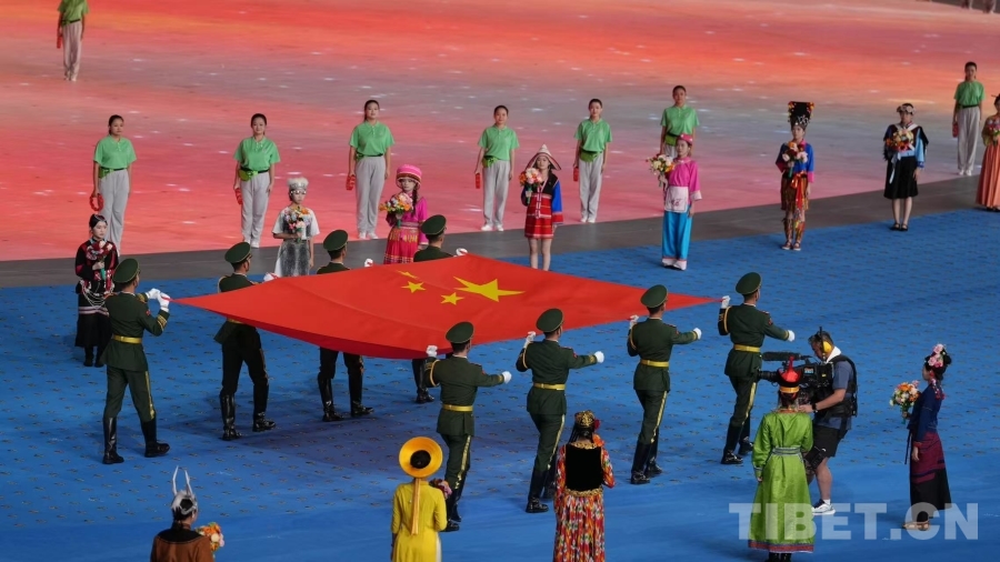 圖為中華人民共和國國旗在開幕式上入場 攝影:德吉卓瑪