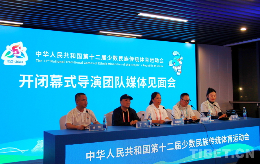 中國(guó)西藏網(wǎng)訊 11月22日,中華人民共和國(guó)第十二屆少數(shù)民族傳統(tǒng)體育運(yùn)動(dòng)會(huì)(以下簡(jiǎn)稱(chēng)運(yùn)動(dòng)會(huì))在海南三亞開(kāi)幕。開(kāi)幕式結(jié)束后,運(yùn)動(dòng)會(huì)開(kāi)閉幕式導(dǎo)演團(tuán)隊(duì)媒體見(jiàn)面會(huì)在三亞市體育中心舉行。導(dǎo)演團(tuán)隊(duì)就開(kāi)閉幕式、主創(chuàng)團(tuán)隊(duì)、演員排練和幕后的精彩故事進(jìn)行了介紹。