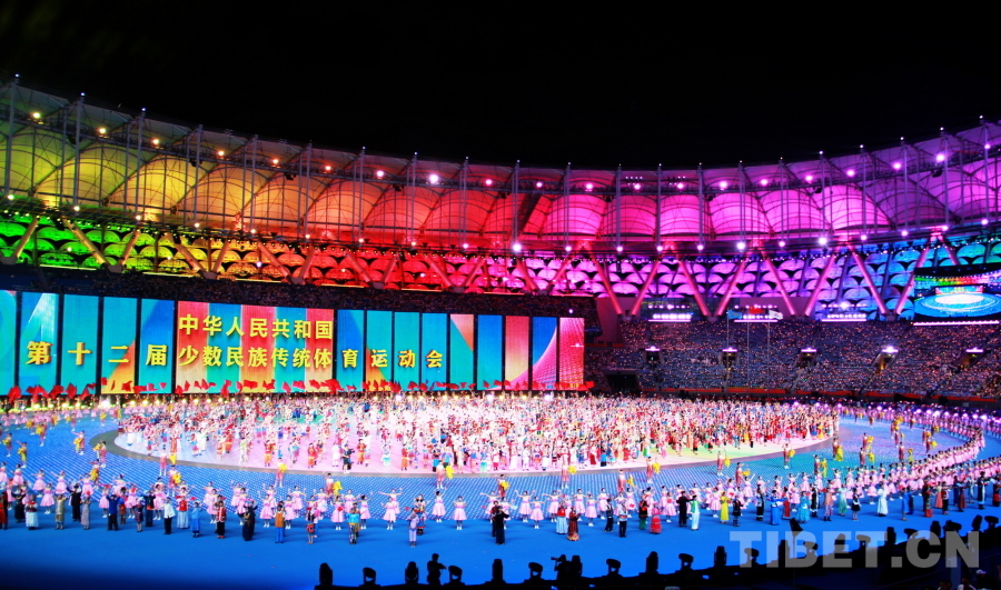 圖為第十二屆全國(guó)少數(shù)民族傳統(tǒng)體育運(yùn)動(dòng)會(huì)開(kāi)幕式現(xiàn)場(chǎng) 攝影:劉莉