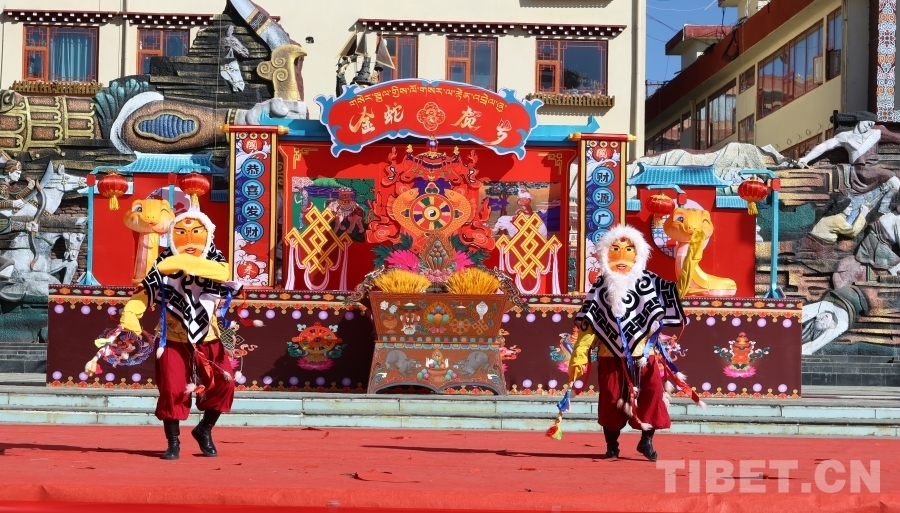 悠揚高亢的藏戲唱腔劃破云霄,四川省級非遺項目“理塘藏戲”率先登場,一曲《扎西雪巴》將藏戲舞蹈生動呈現(xiàn)于觀眾面前。圍觀的男女老少紛紛鼓掌,不時拿出手機(jī)定格精彩畫面。