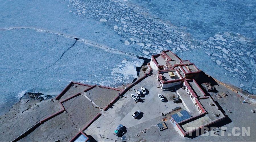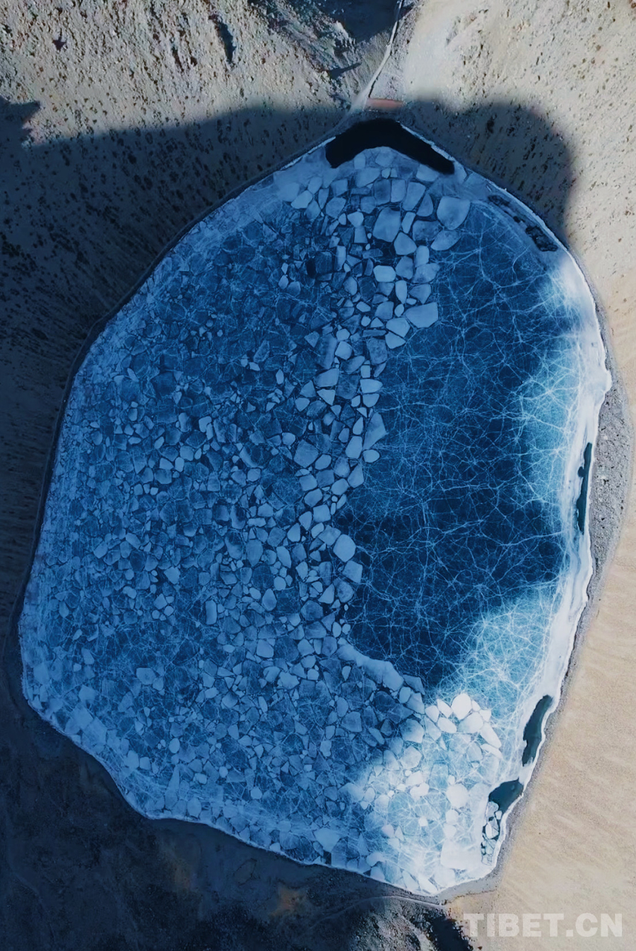 圖為冬日的恰央錯湖面結(jié)冰,湛藍(lán)如翡翠,從空中俯瞰如同一個巨大的“盾牌”,十分壯觀,前來打卡的游客更是絡(luò)繹不絕。攝影:德吉卓瑪