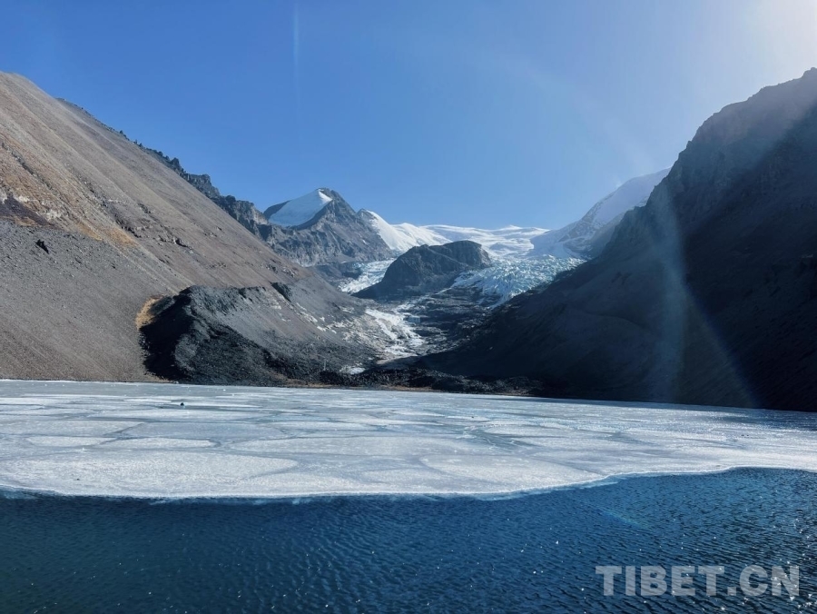 圖為冬日的恰央錯湖面和冰川、雪山融為一體的景觀。攝影:德吉卓瑪