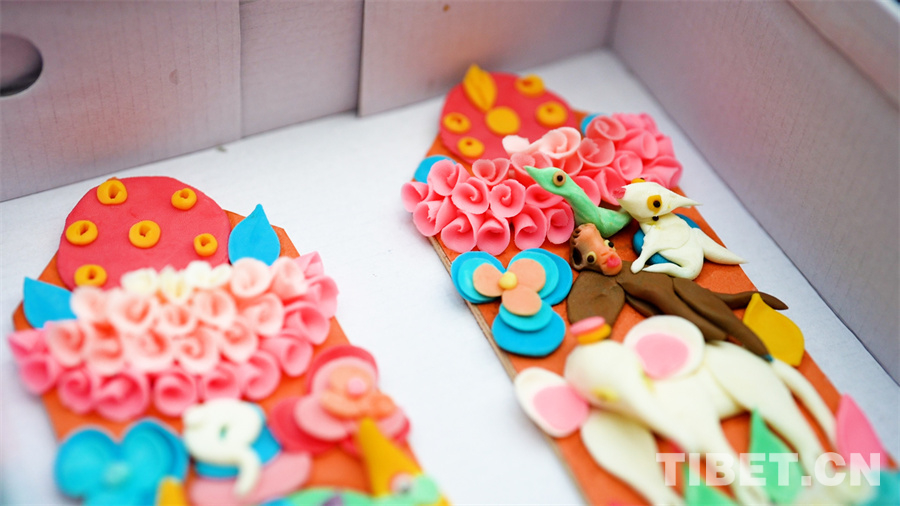 羅布大叔的老家在日喀則市仁布縣普松鄉(xiāng),他制作酥油花已經(jīng)有20多年的時間了。在過完日喀則農(nóng)事新年后,他便在拉薩擺攤售賣酥油花?!安貧v新年是我們傳統(tǒng)節(jié)日中最隆重的節(jié)日,家家戶戶在新的一年里都想有一個吉祥如意的好兆頭,所以這段時間在拉薩的生意特別好。酥油花的制作是一項傳統(tǒng)技藝,不僅是我養(yǎng)家糊口的途徑之一,也是文化的不斷傳承。”羅布說,“我的新年愿望很簡單,就是希望能夠過個好年!”