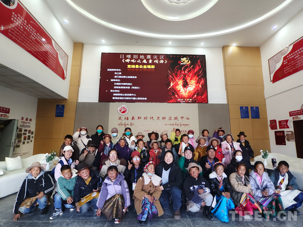 圖為“壹加壹·新時代愛心”兒童之家?guī)ьI楚卡村兒童觀看《哪吒2》