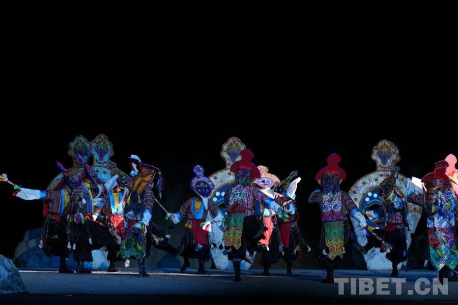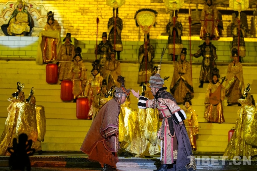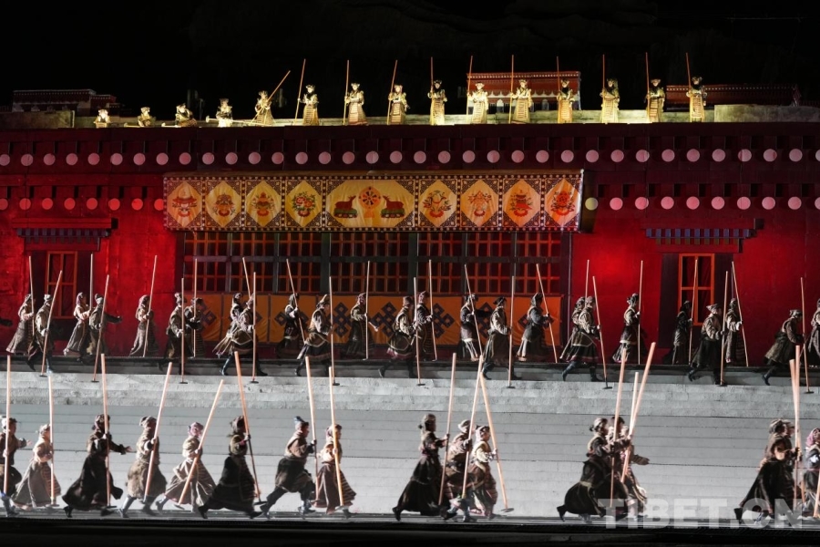 圖為《文成公主》大型實(shí)景劇中群眾演員表演藏戲。攝影:德吉卓瑪