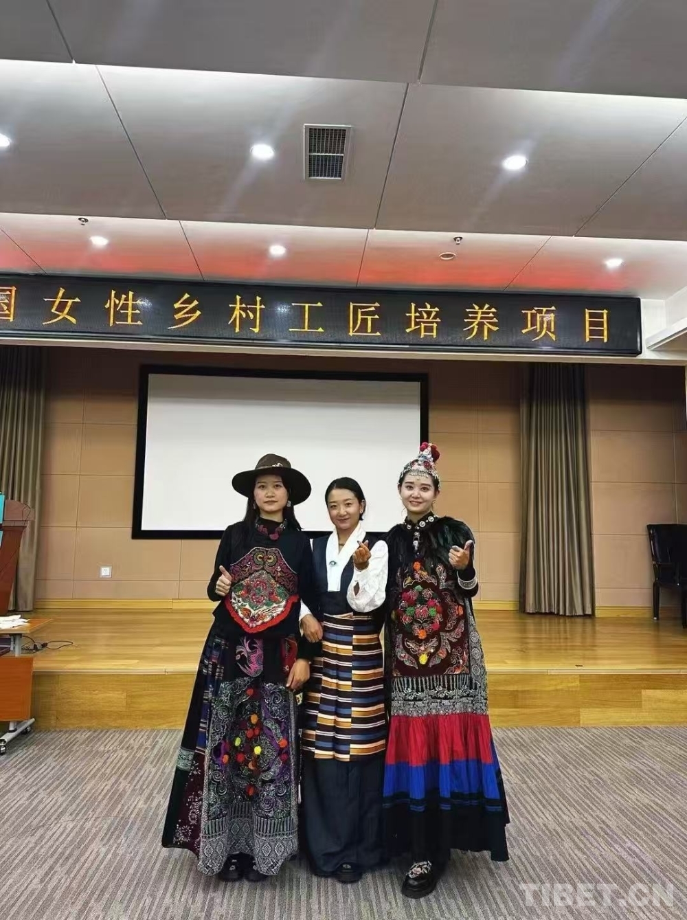 圖為仁青卓瑪(中)參加“中國(guó)女性鄉(xiāng)村公匠培養(yǎng)項(xiàng)目”留影