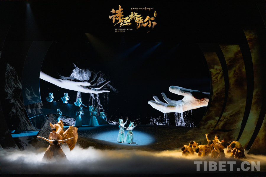 這部融合了《詩經(jīng)》與《格薩爾》兩大文化瑰寶的劇目,以中原地區(qū)最古老的詩歌總集《詩經(jīng)》和目前世界上最長(zhǎng)的史詩《格薩爾》為藍(lán)本,創(chuàng)作出一部瑰麗雄壯且充滿想象力的作品,將深厚的中華文明精粹進(jìn)行了精巧融合和詩意表達(dá)。創(chuàng)作過程中,《詩經(jīng)》和《格薩爾》兩部作品中相同、相似、接近的圖騰、樂器、歌舞、生活習(xí)性等文化元素被巧妙串聯(lián)起來,以“同、融、美”為意象連接點(diǎn),通過數(shù)字手段打造的絕美舞臺(tái)效果,真正實(shí)現(xiàn)了“美美與共”。