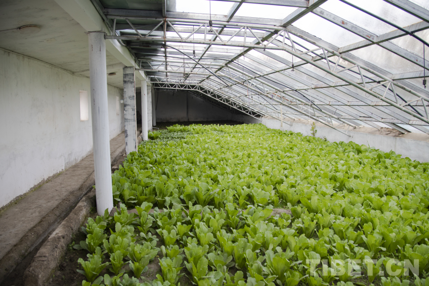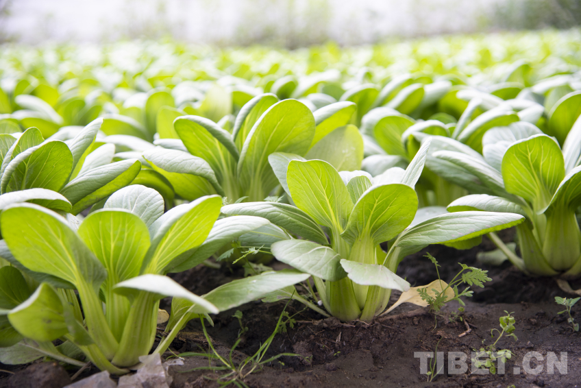 圖為定日縣長所鄉(xiāng)嘎旦村震后修繕的蔬菜溫室大棚內(nèi)長勢正旺的綠葉菜 攝影:趙振宇