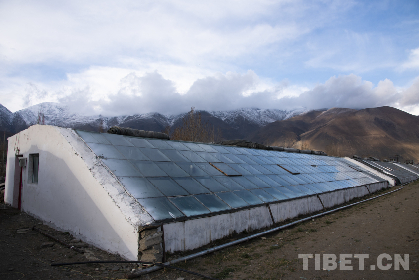 圖為定日縣長所鄉(xiāng)嘎旦村震后修繕的蔬菜溫室大棚 攝影:趙振宇