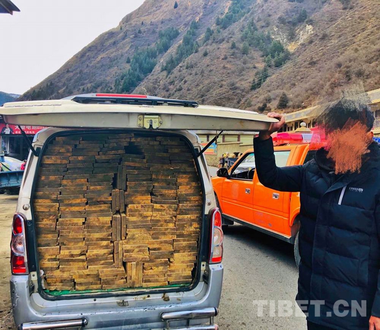 中國西藏網訊 1月5日下午,四川省甘孜州新龍縣森林公安局上占派出所民警在新龍縣查獲一車險遭非法變賣的木材。