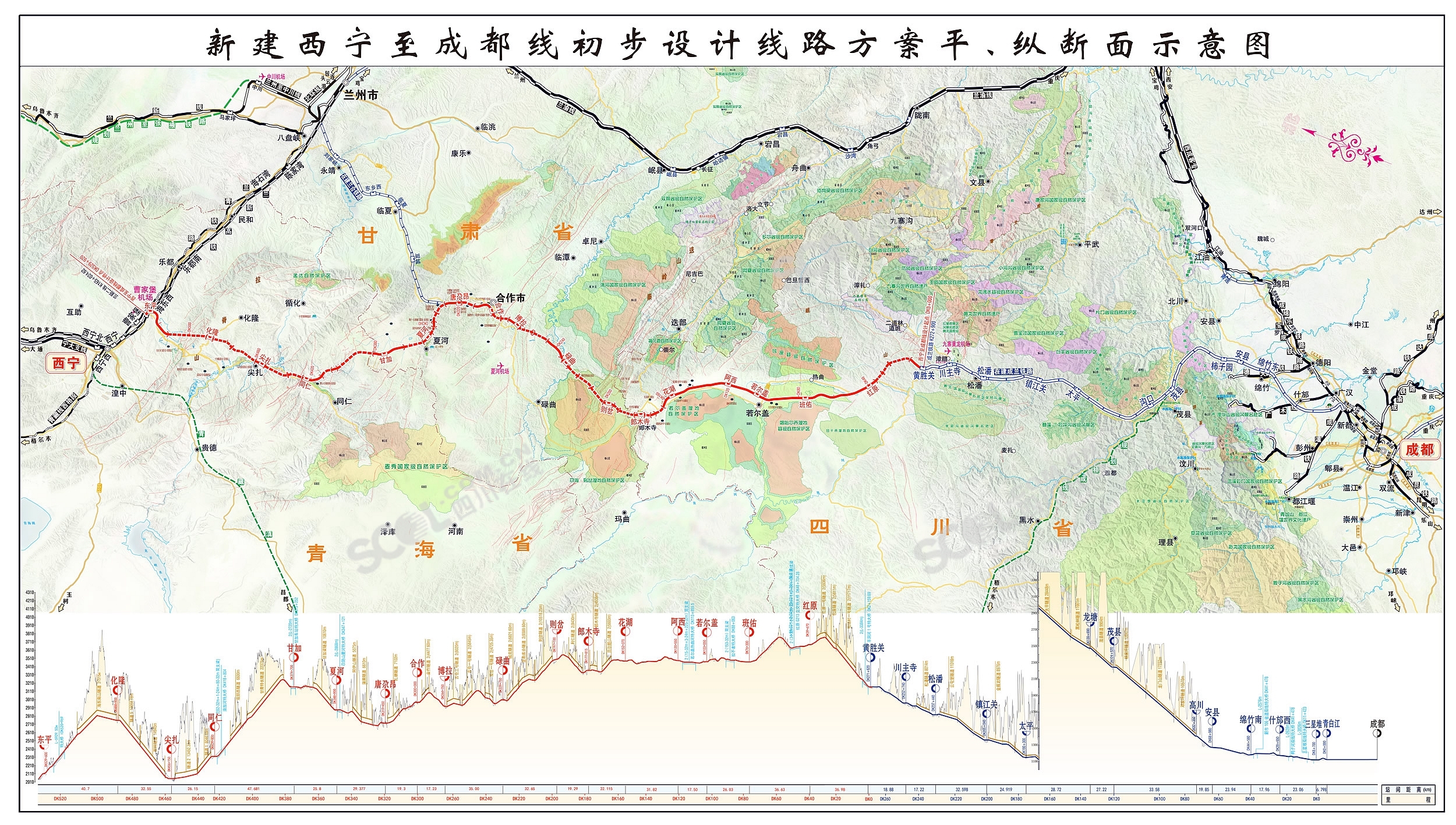 西寧至成都鐵路走行于青藏高原東部邊緣與黃土高原過渡地帶,全線海拔在2000米以上,四川省境內(nèi)段海拔均高于3000米,其中若爾蓋到松潘之間的越齡地帶軌面標(biāo)高3760米,是全線海拔最高點。