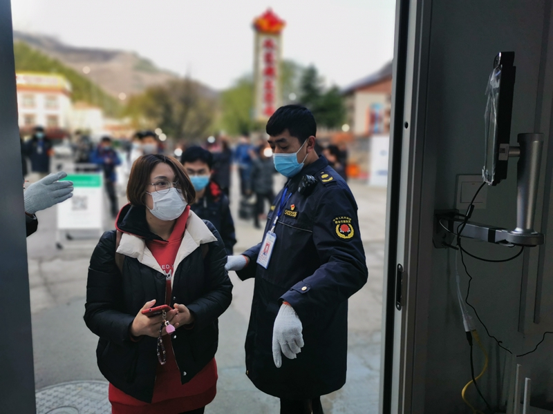 在現(xiàn)場(chǎng),游客們均按照要求,間隔安全距離排隊(duì)。但與以往排隊(duì)入園不同的是,現(xiàn)場(chǎng)除了驗(yàn)票,工作人員還會(huì)檢測(cè)體溫并檢查有無佩戴口罩。記者了解到,游客將統(tǒng)一在藍(lán)天停車場(chǎng)臨時(shí)游客中心乘坐觀光車進(jìn)入景區(qū),且全程必須佩戴口罩,保持安全距離,并服從景區(qū)檢測(cè)點(diǎn)體溫檢測(cè)等。景區(qū)對(duì)未持身份證件和未按規(guī)定佩戴口罩的游客,將按照疫情防控期間相關(guān)規(guī)定,拒絕辦理入園手續(xù)。