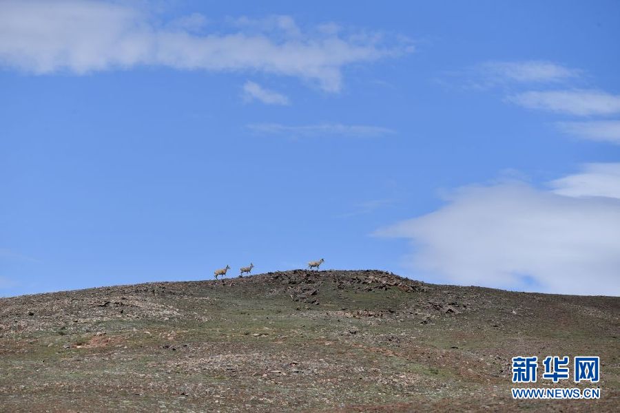 7月7日在可可西里卓乃湖區(qū)域拍攝的藏羚羊。新華社記者 薛玉斌 攝