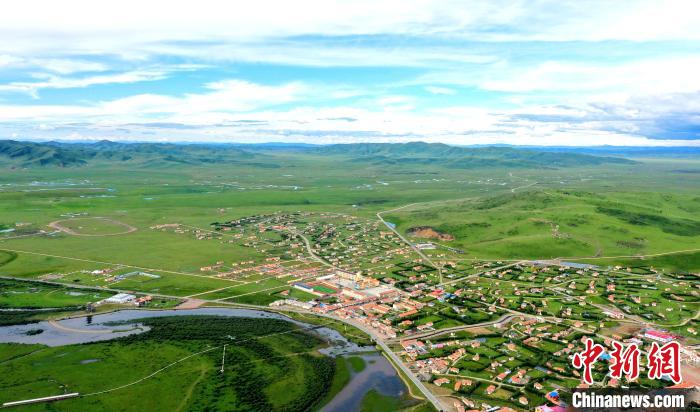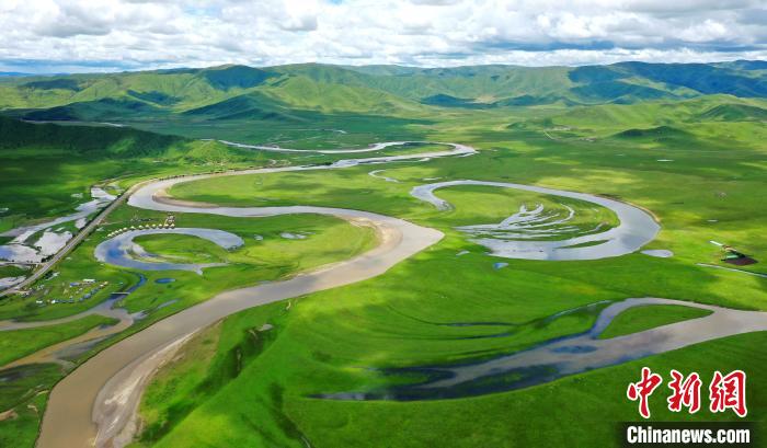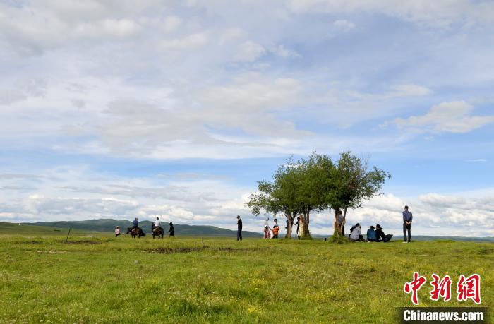 夏日的四川省阿壩州紅原草地,綠草如茵,廣袤無(wú)垠,藍(lán)天、白云、牛群構(gòu)成了一幅幅美麗的圖畫,美不勝收。