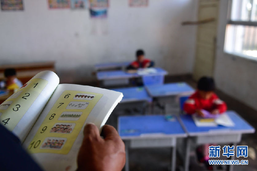 8月31日,在來塘村學(xué)校,完么仁增老師在上課。新華社記者 張龍 攝