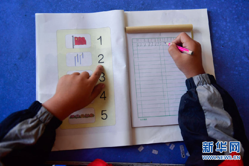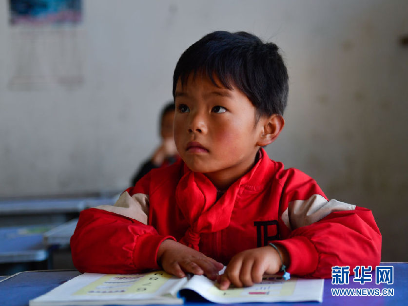 8月31日,在來塘村學(xué)校,一年級學(xué)生馬良在學(xué)習。新華社記者 張龍 攝