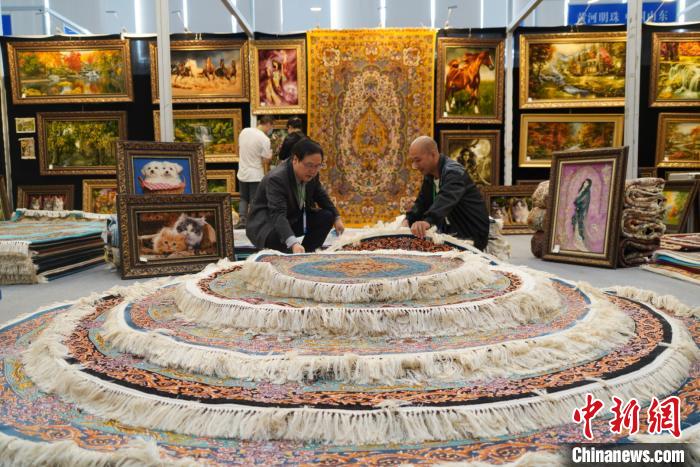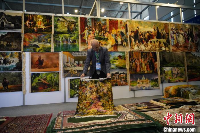 圖為伊朗參展商整理地毯。文思睿 攝