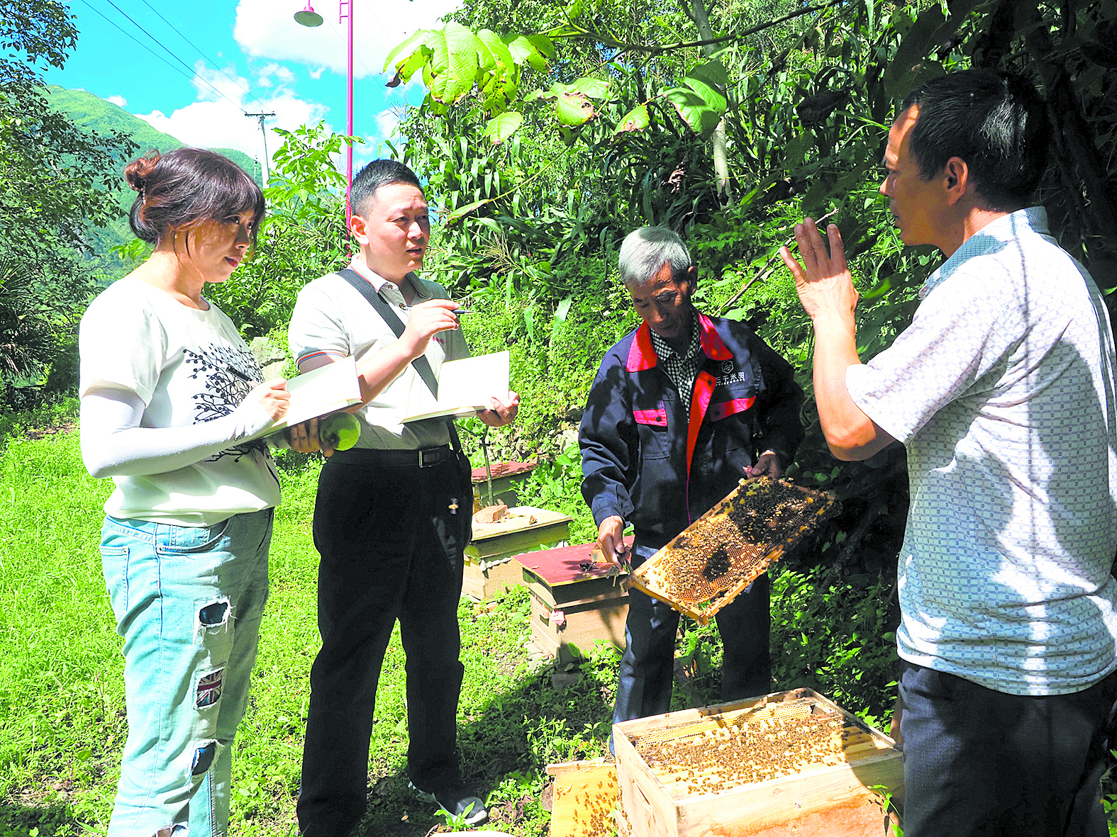 回轉(zhuǎn)身去,蒲江縣對(duì)口援助瀘定工作隊(duì)隊(duì)長吳孟賢正和張洪彬攀談著今年的蜜蜂增收情況。“蒲江縣新增財(cái)政幫扶資金277萬元作為獎(jiǎng)補(bǔ)資金,激勵(lì)成都三千米甜蜂業(yè)有限公司落戶瀘定發(fā)展的‘貢嘎中蜂’養(yǎng)殖支援項(xiàng)目,現(xiàn)在已經(jīng)累計(jì)發(fā)放貢嘎中蜂7500余群,幫助全縣38個(gè)貧困村發(fā)展村級(jí)集體經(jīng)濟(jì),示范帶動(dòng)800戶以上貧困戶增收?!眳敲腺t滔滔不絕如數(shù)家珍,身旁飛過的貢嘎中蜂也似乎成了他和其他對(duì)口支援隊(duì)員的化身,他們從舒適的成都平原來到高原瀘定,懷揣堅(jiān)定的信念,用行動(dòng)肩負(fù)起責(zé)任與擔(dān)當(dāng),他們將藏族同胞的利益裝在心里、舉過頭頂,排除千難萬險(xiǎn),因地制宜推動(dòng)當(dāng)?shù)匕l(fā)展;跋山涉水,進(jìn)居入戶,訪貧問苦,為藏族同胞送上溫暖與關(guān)懷……他們用心血和汗水書寫著一個(gè)大大的“愛”字,甜到藏族同胞的心坎上。