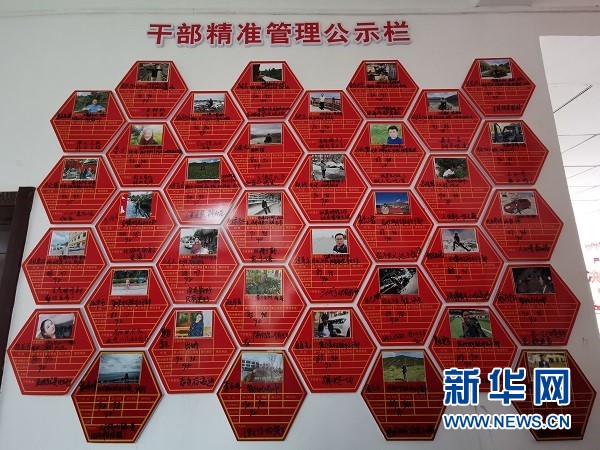 青海省黃南藏族自治州同仁市曲庫乎鄉(xiāng)的“干部精準(zhǔn)管理公示欄”。新華網(wǎng) 王志艷 攝