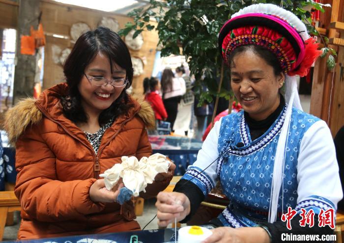 段樹坤說,起初,扎染工藝中的“扎花”手藝較為普遍,但“染色”有獨家秘方,為了生存,老人們傳男不傳女,“當(dāng)我們賺到第一桶金的時候,越發(fā)感覺這項技藝的‘老齡化’問題,現(xiàn)在要通過活態(tài)傳承,將這項老祖宗流傳下來的技藝延續(xù)、傳承?!?/p>