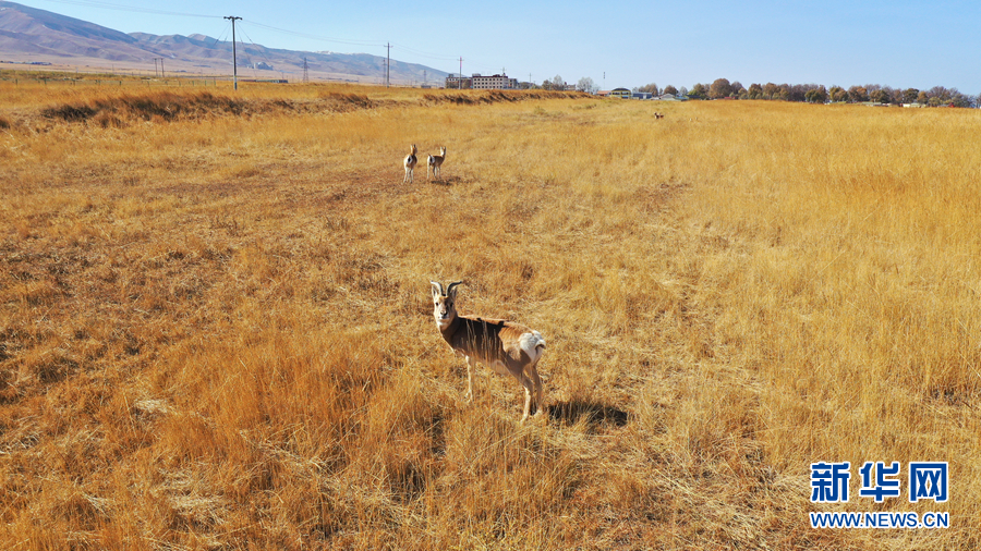 青海湖國(guó)家級(jí)自然保護(hù)區(qū)管理局南岸保護(hù)站,一群普氏原羚正在悠閑漫步。新華網(wǎng) 汪要強(qiáng) 攝