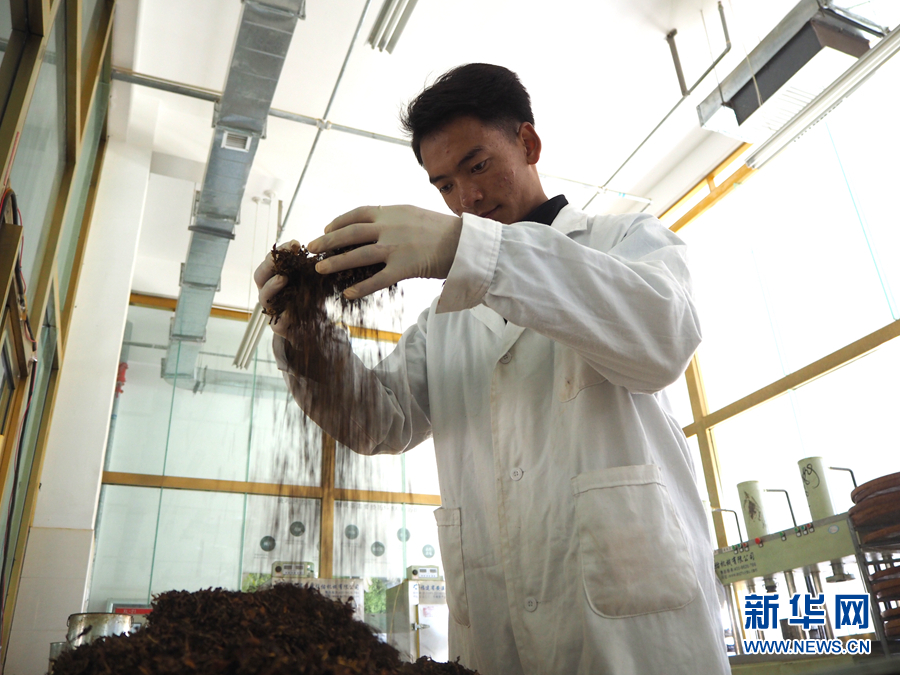 班瑪縣藏雪茶產(chǎn)業(yè)開發(fā)有限責任公司工作人員在晾曬藏雪茶。(資料圖)新華社記者 白瑪央措 攝