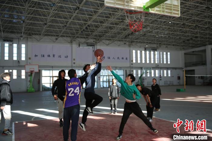 圖為瑪多縣民族寄宿制中學(xué)的藏族學(xué)生正在學(xué)校風(fēng)雨操場(chǎng)內(nèi)打籃球。何炳勛 攝