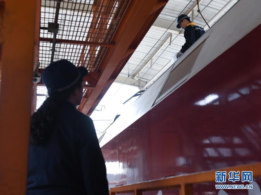 2月24日,在青藏鐵路公司西寧機(jī)務(wù)段整備車間,隔離開關(guān)班組成員賀霞(左)在工作中。新華社記者 張龍 攝