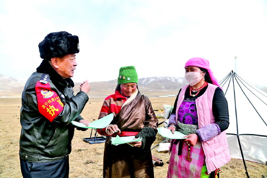 民警向沿線(xiàn)牧民宣傳法治安全常識(shí)。