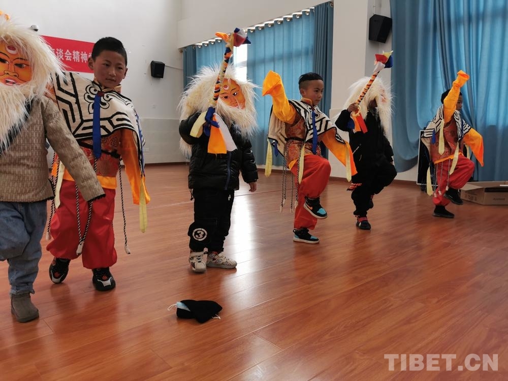 圖為高城鎮(zhèn)幼兒園的孩子們體驗(yàn)藏戲游戲