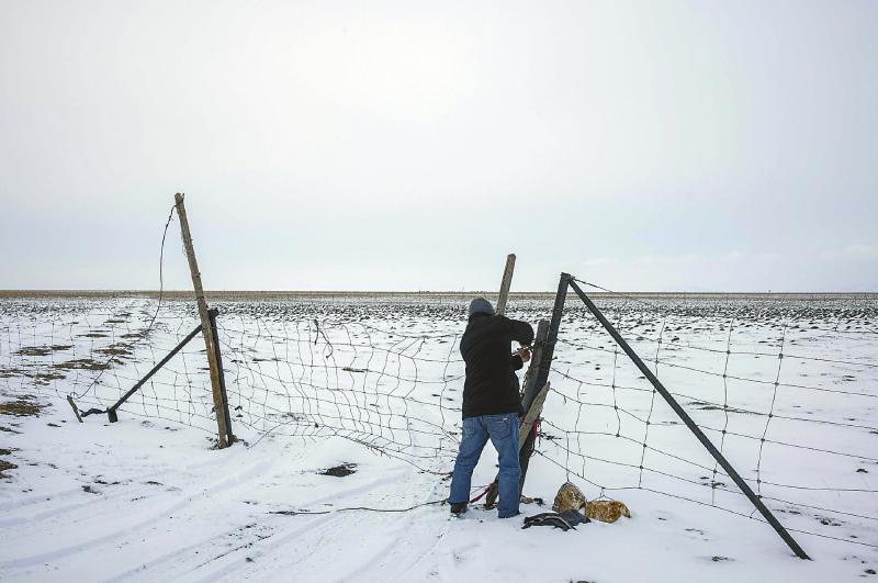 3月6日,若爾蓋濕地國家級自然保護(hù)區(qū)管理局生態(tài)護(hù)濕員如科冒雪清理?xiàng)⒌刂苓叺碾[患。尹鋼 攝