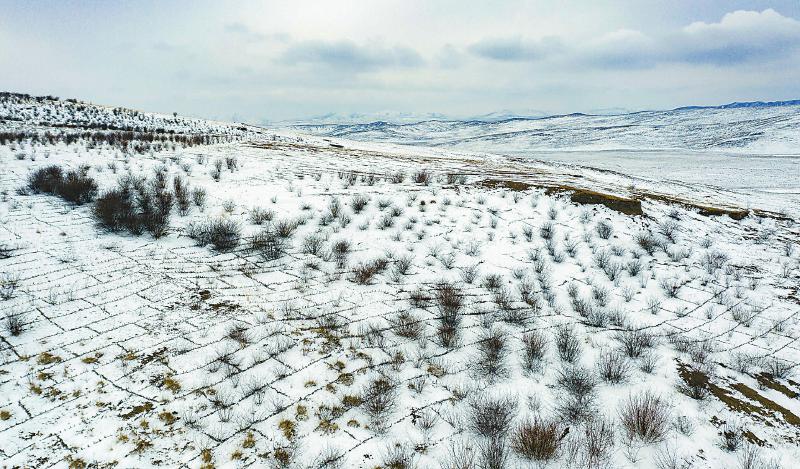 2021年3月6日拍攝的若爾蓋縣麥溪鄉(xiāng)和轄曼鎮(zhèn)實(shí)施防沙治沙項(xiàng)目。該項(xiàng)目取得良好效果,高原紅柳覆蓋沙化面積達(dá)85%以上。尹鋼 攝