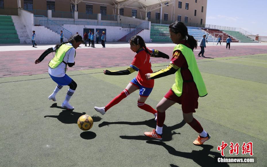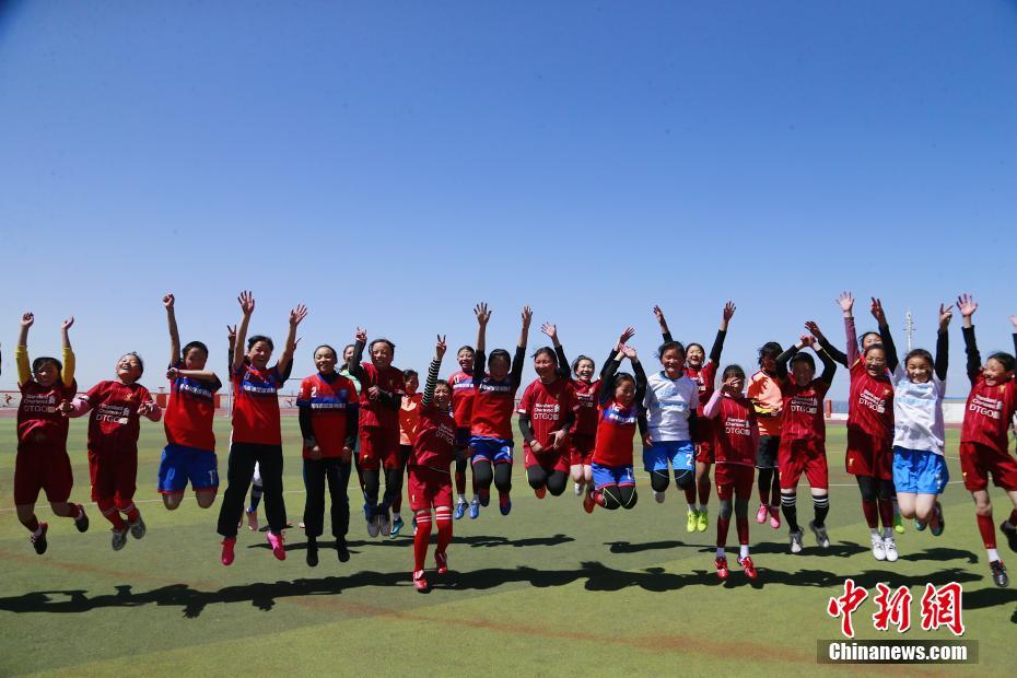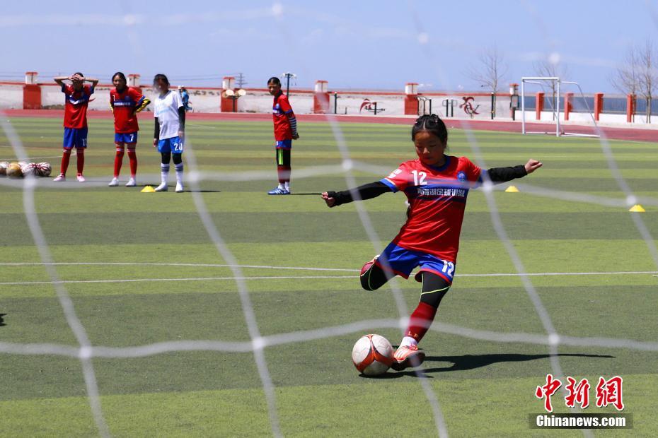 4月21日,青海省海南藏族自治州共和縣,青海湖民族寄宿制學(xué)校的足球場上,女子足球隊(duì)的隊(duì)員們正在進(jìn)行訓(xùn)練。該校的女子足球隊(duì)共有小學(xué)組、初中組隊(duì)員53人,皆為來自牧區(qū)的藏族女孩。中新社記者 馬銘言 攝